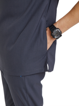 Koyu Gri doktor, hemşire forması ekstra likra içeriğiyle çok esnektir ve gün içindeki temponuzda size konfor sağlamak için tasarlanmıştır.